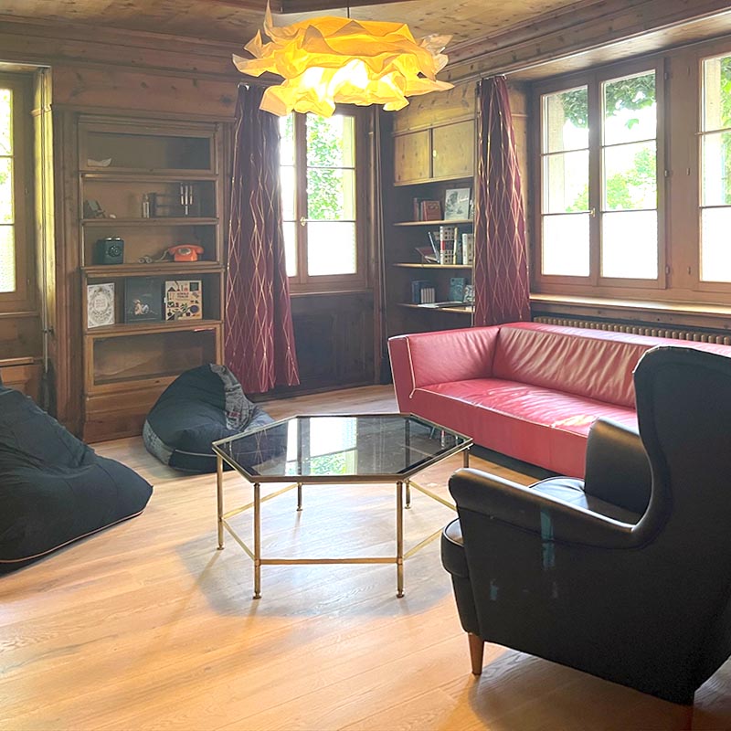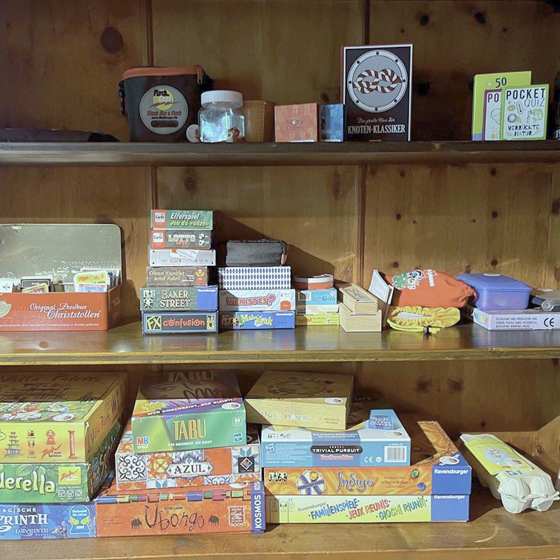 In der Bibliothek – im Holzstübli – gibt es gemütliche Ecken zum Lesen, Schmökern, Spielen und Träumen.